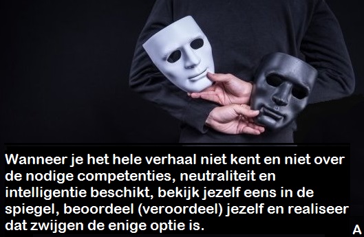 Uiteindelijk stel je vast dat het gehele rechtssysteem een misleidende, kapitaalopslurpende methode is waar advokaten en rechters op speelse wijze rijkelijk hun zakken vullen in een systeem dat als onbetrouwbaar en middeleeuws mag omschreven worden. Ter bevestiging kan ik aanhalen dat ik mij in mijn beoordeling gesteund weet door vele personen die jarenlang justitiegerelateerde aktiviteiten hebben verricht. Onder wie de oudste mijner zussen, die haar gehele loopbaan voor justitie heeft gewerkt. “Vele rechters doen alsof ze het recht verdedigen, maar eenmaal het doek valt over het proces zie je hun belachelijke en afkeurende instelling, waarbij dikwijls de draak wordt gestoken met de rechtsziting en de betrokken individuen.” In de familie waren er nog 2 zussen die werkzaam waren voor justitie en advokaten, maar in het leven is het nu eenmaal aan te raden enkel kwaliteit te waarderen.