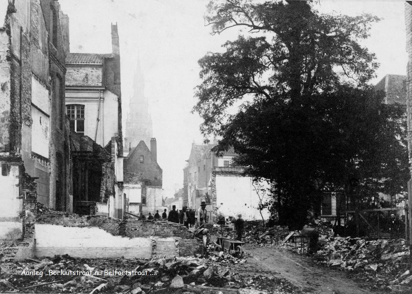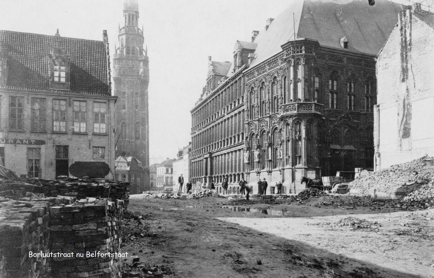 De afbraak van de huizenrij aan de Hoogpoort die de rechtstreekse verbinding mogelijk maakte van de Vlasmarkt naar de Botermarkt paste in het plan van burgemeester Emiel Braun voor meer ruimte en architecturele zichtbaarheid in de Gentse binnenstad.