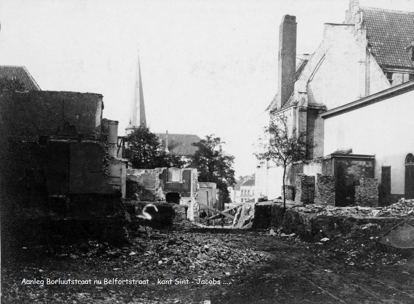 In 1899 werd de noordzijde van de Botermarkt, het pleintje voor het stadhuis, geopend voor het trekken van de brede en rechte Borluutstraat tot bij Sint-Jacobs. Enkel het gedeelte tussen de Kammerstraat en Vlasmarkt id est de verdwenen Korte Kammerstraat bevat enkele oude kernen aansluitend bij de Vlasmarkt en Bij Sint-Jacobs.