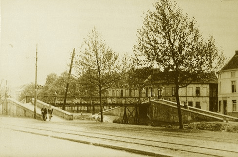Deze overspanning verbond de ‘Veugolzangkoaie’ (Vogelenzang) met de ‘Plezante Veste’ (Blaisantvest). Het werd gebouwd om het werkvolk uit de Tolhuiswijk via het Berouw en de Spaarstraat naar de fabrieken op de Nieuwe Vaart (Vynckier, Gèsfabrieke,…) te leiden.