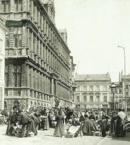 Oorspronkelijk kreeg het de naam “Paradeplaats”. Niet omdat hier de wapenschouwingen plaatsvonden van de burgerwacht maar wel omwille van de openbare toneelvoorstellingen, parades genoemd, die werden opgevoerd tijdens allerhande feesten. In de 16e eeuw was het gekend als de Wollemarkt toen voor het “Schepenhuis van Ghedeele” de wekelijkse wolmarkt plaatsvond. Tot 1848, tijdens de groote Foire, vond hier de standplaats der kramen plaats verspreidt voor een groot deel in de talrijke kamers van het stadhuis.