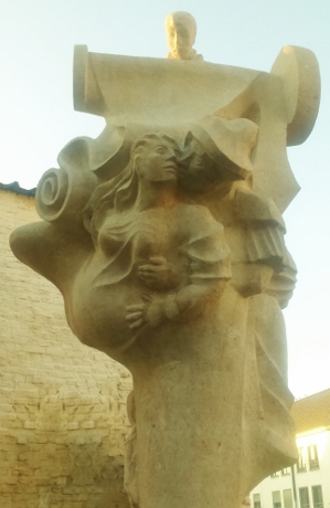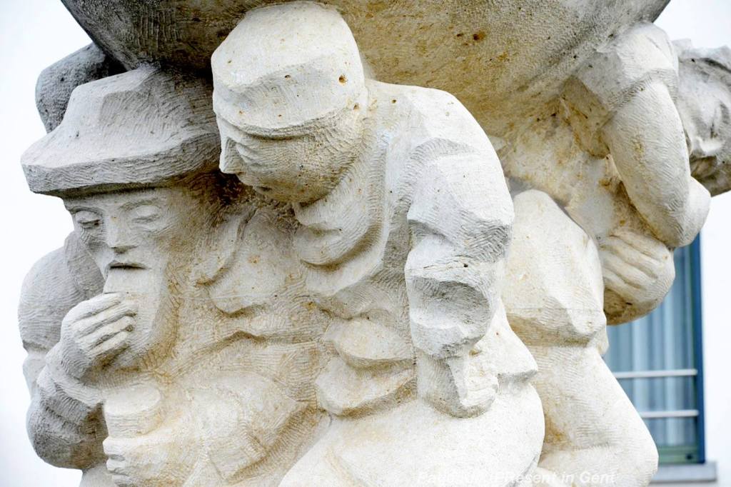 De beeldengroep nemen een vorm aan van boomkruinen. Hun grote massa compenseert de schaalbreuk tussen de moderne flatgebouwen en de middeleeuwse waterpoort “het Rabot”.