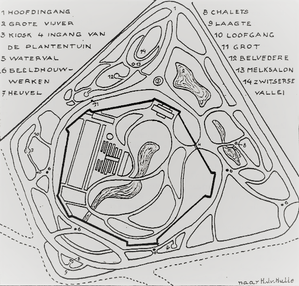 De inspecteur van de Plantsoendienst, H. J. van Hulle, onder wiens leiding de perken en bedden aangelegd waren, had bovendien een gedetailleerd ontwerp van parkaanleg gemaakt dat evenwel niet werd uitgevoerd. Had men het gedaan, dan was heel de ruimte begrepen binnen de genoemde ” ring” aangewend geweest voor de oprichting van een nieuwe plantentuin met als ingangspoort de nog bestaande Nemo-me-impune-laces-set poort. Verder een aantal gebouwen voor het bestuur en de huisbewaarder. Ook koude en warme serres ( Victoria regia); orangerie, wintertuin, museum, laboratorium, restaurant, enz. Allemaal dingen die vandaag (1975) zijn verwezenlijkt, al dienen we het restaurant een paar honderd meter verder aan de Heuvelstraat te gaan opzoeken.