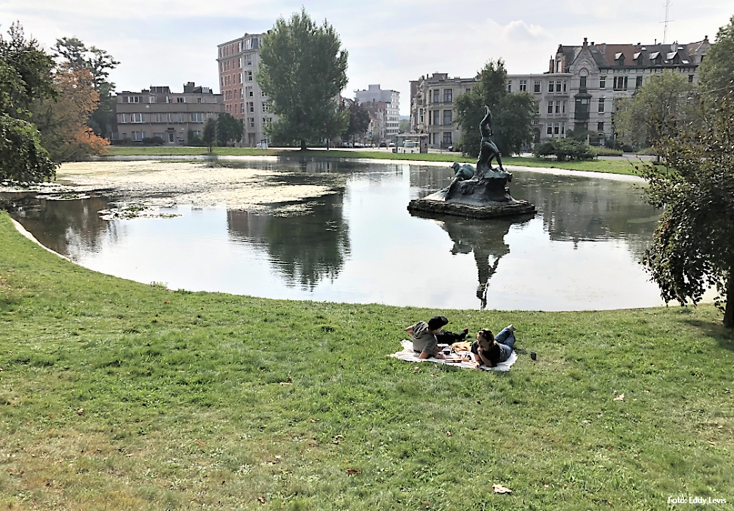 In 1889 werd in het Gentse Citadelpark, op de plaats “de schelp” of “la petite vallée” genoemd, het wit marmeren beeldhouwwerk “de geboeide Promotheus onder de klauwen van de gier” geplaatst. Het was het werk van beeldhouwer Louis Pierre van Biesbroeck, geboren te Gent op 17 februari 1839 en overleden te Ukkel op 11 maart 1919. In de volksmond was dit kunstwerk algemeen bekend als “Pietje Bloot”. Bij het uitbreken van de oorlog in 1940 werd het vanuit Mariakerke kapot geschoten. In augustus 1940 werd besloten op de vrijgekomen plaats een openluchttheater te bouwen. Dit geschiedde door de plantsoendienst van de stad onder leiding van architekt Bontinck.
