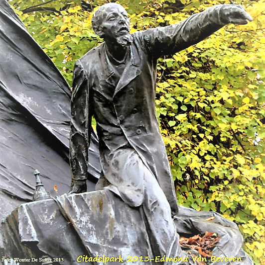 Het monument van de socialistische voorman Edmond Van Beveren (°1852-†1897), een ontwerp van kunstenaar Jules Van Biesbroeck jr. (°1873-†1965) in een uithoek van het Citadelpark met zicht op de Overpoortstraat. Van Beveren, de man achter het programmabrein van de eerste Sociaslistische Partij in Vlaanderen, naar wie ook in 1910 een plein werd gedoopt in de Bloemekenswijk. Het beeld werd onthuld op 25 juli 1926 en ging gepaard met een feeststoet met praalwagens, een cantate en gelegenheidsredes van oa vader Anseele en schepen Balthazar. Het monument stelt de eerste steenlegging van de coöperatie voor door arbeidershanden, samenwerking door algemene inspanning, bevrijding door het woord van Van Beveren en uiteindelijk een heerlijke toekomst. Er werd 4500 kg metaal voor gebruikt en het hoogste punt bereikt bijna 7 m.