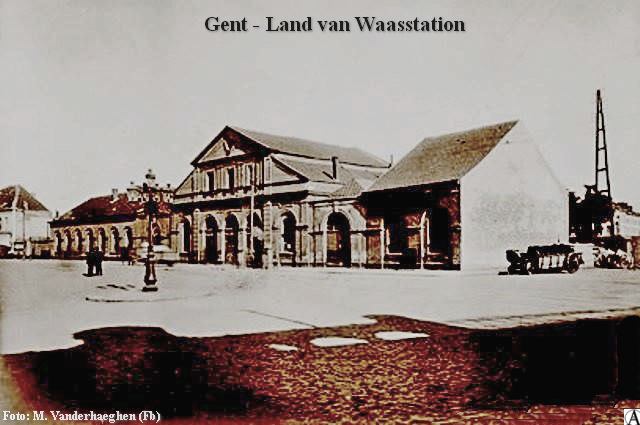 Daar verrees op 15 augustus 1847 de “Statie van den Waeschen Ijzerenweg” of het “Land van Waasstation” als eindstation voor de trein uit Antwerpen, lijn 59. Bij toepassing van de wet van 19-7-1832 besloot de toenmalige regering een aanbesteding uit te schrijven. De concessie werd op 16.11.1842 toegewezen aan ir. De Ridder uit St.-Niklaas, ook al betrokken bij de aanleg van de eerste spoorlijn tussen Brussel en Mechelen. Hij realiseerde de aanleg van de sectie St.-Niklaas – Vlaamsch Hoofd (Antwerpen) en verlengde de spoorlijn tot in Gent. Op 9 augustus 1847 was lijn 59 over de gehele lengte in bedrijf.