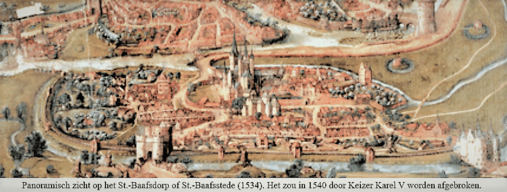 Sint-Baafs ontwikkelde zich door de oprichting van een kerk in de nederzetting Ganda aan de samenvloeiing van Leie en Schelde. Aanvankelijk gekend als Ganda, is het vanaf 864 St.-Bavo genoemd naar één van Amandus’ volgelingen, de heilige Bavo. Deze man leefde hier als kluizenaar en na zijn dood was hem een laatste rustplaats toegekend in het klooster.