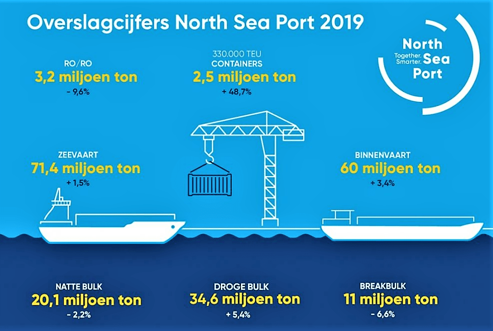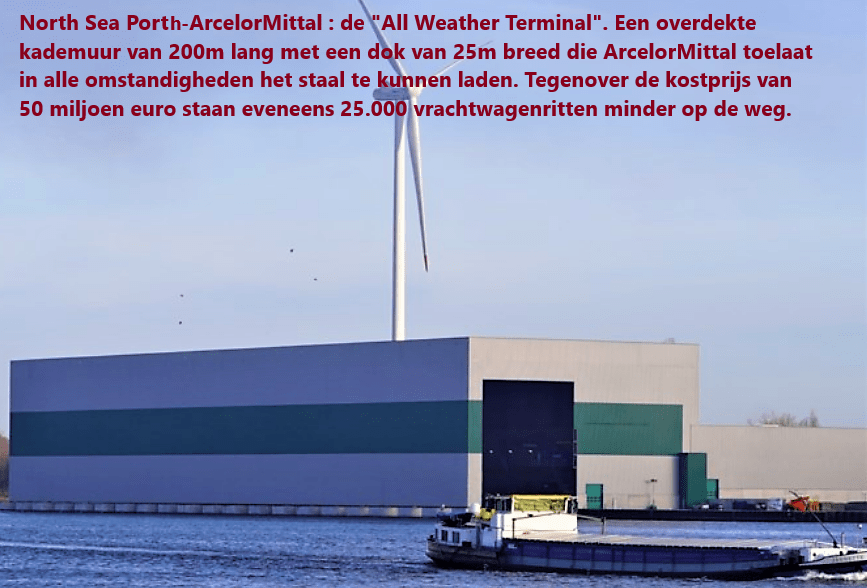 Ter info: North Sea Porth is 60 km lang, telt 33 dokken met een tewerkstelling voor zo’n kleine 100.000 werknemers. Met meer dan 13 miljard euro omzet wordt de 3e plaats bezet op de lijst van Europese havens. Wat het goederenverkeer betreft staat North Sea Port op de 10e plaats. Zo’n 9371 zeeschepen en 40.000 binnenschepen verzorgen het transport van 130 miljoen ton goederen!