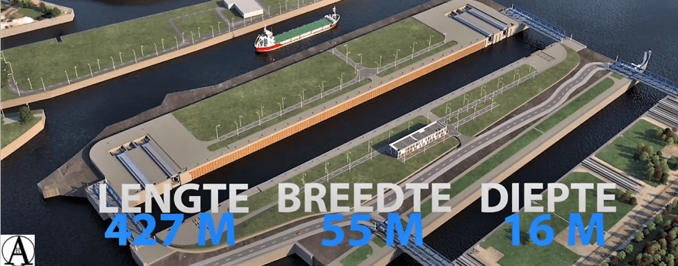 De huidige Middensluis bleef tijdens de bouw nog langere tijd in gebruik, maar zijn we nu aan het slopen. Na de realisatie vaart in 2023 het eerste schip door een van de grootste sluizen ter wereld. De Nieuwe Sluis is qua afmetingen vergelijkbaar met de sluizen in IJmuiden, Antwerpen en Panama.