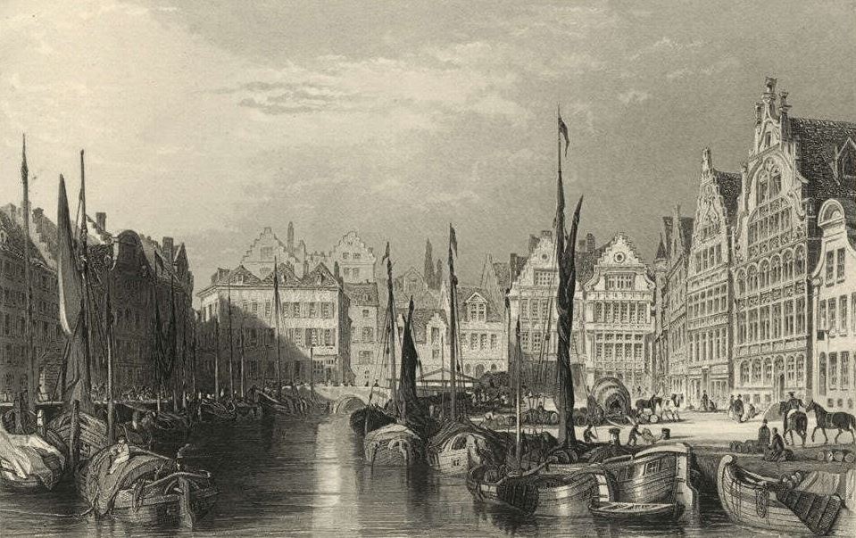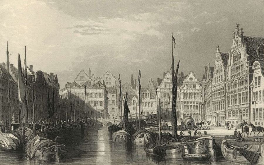 Gent 1879 gravure boten in de haven