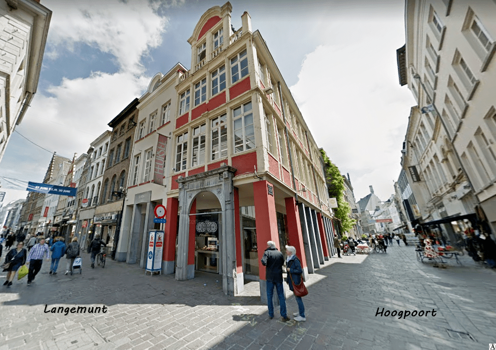 Meer dan een eeuw later, in 1961, “geplukt” uit één van de talrijke notariële aankondigingen: “Vrijwillige openbare verkoping van een belangrijk centraal gelegen ruim handelscomplex met inrijpoort, te Gent, Hoogpoort nr. 43, zijnde winkelhuis met toonzalen, magazijnen, kelders, 4 garages en koer. Enige zitdag: donderdag 18 mei 1961”. Andermaal teken en symbool des tijds, maar het accent is verlegd geworden van weelde en schoonheid naar het commerciële en het functionele. Het salonbehang met kostelijke tapijten en de marmeren schouwen zijn op de gele aanplakbrieven een winkelhuis met toonzalen geworden, de “hoving en dry spacieuse kelders” zijn er prozaïsch ‘vier garages met koer’ in vette druk geworden. Langzaam maar zeker hebben handel en nering zich in de oude stadskuip ingeplant. Moderne uitstalramen, lichtreclames, neonbakken en brede inrijpoorten hebben de koetspoorten van weleer verdrongen.