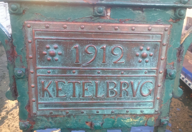 In 1912 is deze metalen brug vernieuwd, naar analogie met de St.-Jorisbrug, en zo’n 25cm verhoogd voorzien van een dubbel tramspoor ter vervanging van het enkel tramspoor dat was aangelegd in 1874. Bij die werken is een oud kanon en 15 kanonballen uitgegraven. Het kanon werd aanzien als een meerpaal waar een boot kan worden afgemeerd en de kanonballen waren waarschijnlijk via afgevoerde grond van oude vestigingen daar terechtgekomen.