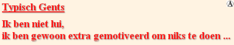 Een grapje tussendoor: Op een tentoonstelling: “Ik zie niets in dat schilderij!”, zegt de bezoeker aan de eigenaar van het atelier. Repliceert de eigenaar: “Ik ook niet. Daarom wil ik het doek ook verkopen.”