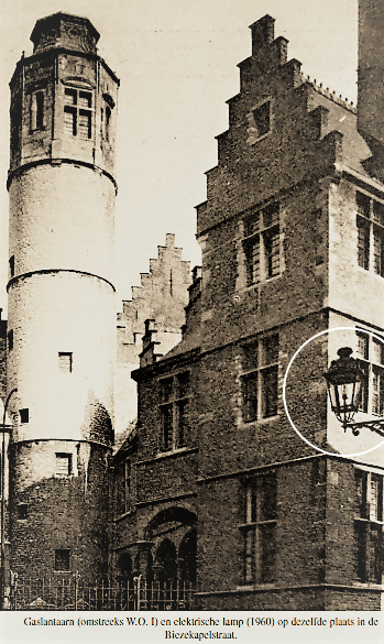 Zo luidde het relaas dat Lode Hoste in 1947 gaf van de voorgeschiedenis van het gloeilicht die in Gent begon in de Hollandse Tijd. Amper een jaar na Story’s experiment gaf de stad toelating gasbuizen te leggen vanaf de Grote Huidevettershoek, waar de gasfabriek gevestigd was, tot op de Kouter en verder naar de Recolettenbrug met een vertakking via de Kalandeberg naar de Korenmarkt. Gaslicht van fladderende ‘vlinders’ tot stabiele gloeikousjes. Gloeilicht was dat echter nog lang niet. Het zou nog tot de jaren 1890 duren vooraleer de gloeikousjes in gebruik kwamen. Tot dan brandde gas met ‘papillons’. Opnieuw Hoste. Die papillons waren geweldig aan drukverschil onderhevig zodat de vlam meer danste dan behoorlijk licht gaf. Als men over licht spreken mocht! Later verbeterde dit door speciale klokregulators op elke papillon, maar ’t sissend drukgeluid bleef. En lawaai gaf dat wel! Niet te verwonderen dat dit ‘vlinderlicht’ ook ‘vleermuislicht’ genoemd werd.