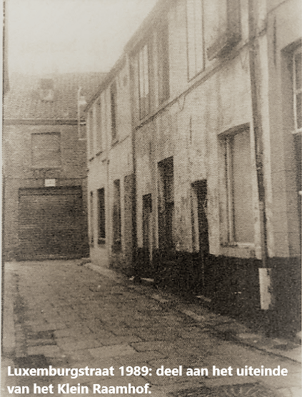 Van het deel van de Luxemburgstraat dat haaks op de twee andere delen staat en uitmondt in Ramen, tegenover de Komijnstraat, geven we hierbij ter illustratie twee foto’s. De eerste toont de situatie op heden, de tweede dateert van 1890. Zoals men ziet hebben er in dit deel van de Luxemburgstraat sinds het einde van de vorige eeuw heel wat verbouwingen plaats gehad en hebben veel van de kleine huisjes, die er stonden, plaats gemaakt voor woonsten van recenter datum. De straat heeft trouwens een groot deel van haar vroeger karakter verloren. Zoals men kan zien op de foto van 1890 hebben er vooral aan de Noorderkant eertijds typische oude woonsten gestaan. Op een paar uitzonderingen na, hebben de meeste huizen er thans architectonisch geen bijzondere betekenis. Te noteren valt dat er in de Burgstraat een aantal grote panden gelegen zijn die een achterbouw, garages en een in-en uitrit hebben in de Luxemburgstraat.