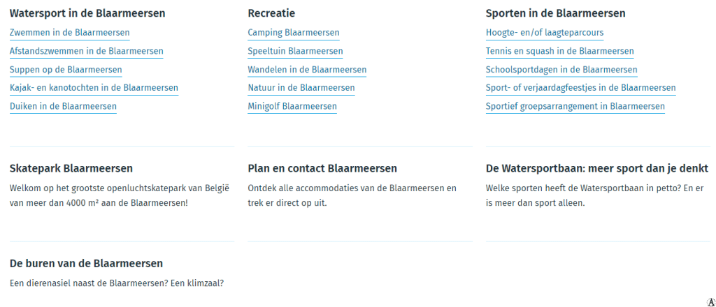 Het sport-en recreatiepark Blaarmeersen beslaat een 100 ha groot meersengebied. In de nabijheid van de Watersportbaan en op amper 10 min. van het centrum van Gent vindt elke sporter hier wel zijn gading en verleidt dit domein elke natuurliefhebber tot het maken van een fikse wandeling genietend van het vele groen.