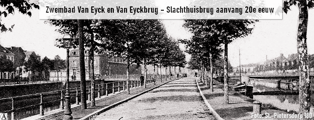 De onderste foto is het gedeelte dat in 1908 door onze genietroepen is verwijderd. Vanaf de Van Eyckbrug-Slachthuisbrug liep deze weg door tot net voorbij de verdwenen Rode Torenbrug-Pasbrug die in het verlengde van de”Tussen ’t Pas”-straat lag in de buurt van de huidige St.-Jorisbrug. Op het waterlopenplan uit 1862 kun je centraal de gescheiden waterlopen opmerken van het Rommelwater (Visserij) en de Nederschelde tot net voorbij de de Pauwvertakking aan de Portus Ganda.