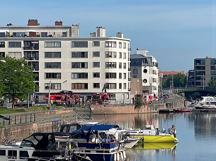 12.06.2022: Aan de Nieuwbrugkaai, de ‘zijkant’ van Portus Ganda, is vanmorgen vroeg een auto in het water beland. Het ongeval gebeurde iets na 6 uur. De auto belandde in het water vlak voor de Bavobrug, het voetgangers- en fietsersbrugje tussen de Nieuwbrugkaai en het parkje op het Veermanplein. “Om half 7 waren de hulpdiensten al aanwezig”, vertelt een ooggetuige. “De auto lag toen nog in het water, en duikers van de brandweer maakten die vast aan een kraan. Een tiental minuten later werd de auto omhoog getakeld.