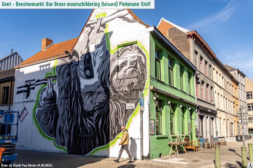 De muur van het populaire café op de Beestenmarkt wordt door Graffiti vzw gebruikt. Zij geven zo opkomende Oost-Vlaamse graffitikunstenaars zoals Pinkman Stuff de kans om zich uit te leven. De luiaard blijft nog een maand hangen op ‘Le Mur’ en wordt dan vervangen door een nieuw kunstwerk.