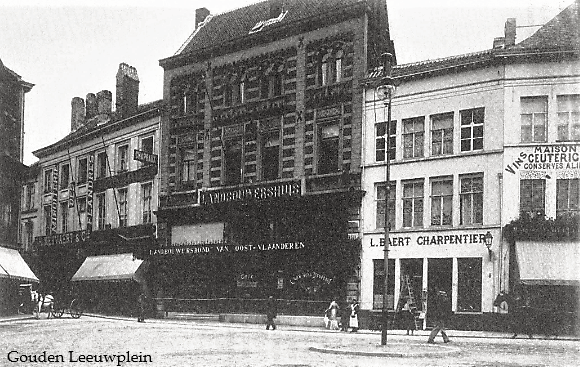 Tot 1900, toen de naam wijzigde in Grand Café, was hier meer dan 5 eeuwen het hotel-restaurant De Gouden Leeuw gevestigd. Zo vonden hier in 1584 de onderhandelingen plaats om Gent na de Geuzentijd terug onder het gezag van de Spaanse koning Filips II te brengen. Gratis logies was er voorzien voor wie drie maaltijden bestelde. De prijs voor een fles Spaanse wijn (1l) kostte toen evenveel of 10 broden.