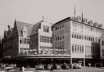 Na de Tweede Wereldoorlog vernielde een brand een aantal panden aan de noordkant van het plein. Hier was de Sarma gevestigd en deze warenhuisketen trok er eind jaren 1950 een nieuw winkelcomplex op met aan de buitenkant historiserende gevels.