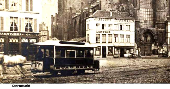 Kasseibanen werden aangelegd die het transport aangenamer maakten. Ook huurkoetsen (fiacres) werden ingezet als voorloper van de taxi. Vervoerwagens, ook “Seesen” genoemd, kon je aantreffen aan het Sluizeken en aan St.-Jacobs. In 1874 reden de eerste trams over de Korenmarkt, getrokken door paarden.