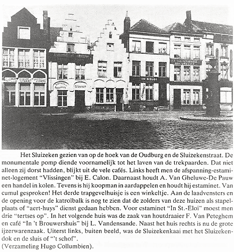 Betreffende het pleintje prijkte er tot begin van de 20e eeuw een monumentale gietijzeren pomp in het midden van het Sluizeken.