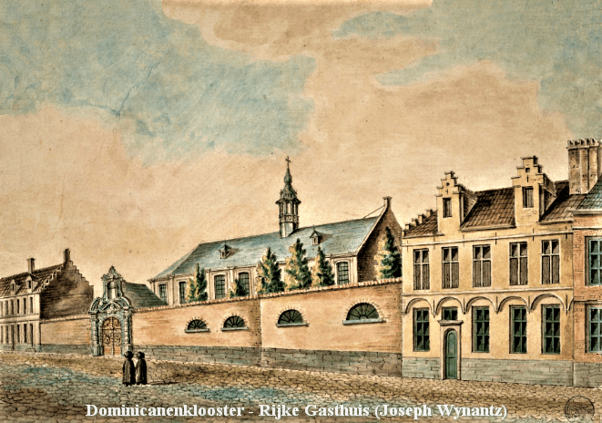 Het Predikheren- of Dominicanenklooster was gelegen op de St.-Niklaasparochie naast de St.-Michielskapel, de latere St.-Michielskerk. Hier was aanvankelijk het Wittocxhospitaal gevestigd. Door een brand bleek de aangerichte schade in deze verzorgende instelling onherstelbaar en lieten in 1201 Fulco van Utenhove, kanunnik van St.-Pieter te Rijsel, zijn zuster Geertrui, haar dochters en enkele andere godvruchtige vrouwen een huis in Onderbergen, gelegen naast de kapel, inrichten als hospitaal. Het was toen gekend als het “Sancta Maria in Gandave”, het Utenhove Hospice.