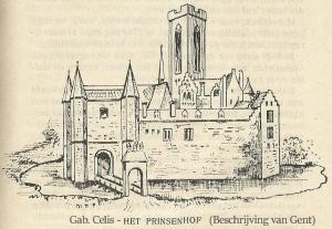 25 april 1869. Gisteren verkocht op een openbare veiling: enkele oude eiken planken en verscheidene oude versiersels voortkomend uit de kapel van het Prinsenhof. Men weet dat de fabriek van Juffrouw Coppens in het Prinsenhof werd opgericht in wat overblijft van de gebouwen van het paleis, waar eens de machtige vorst Keizer Karel werd geboren en dat thans wordt afgebroken. Het enige wat nog rest van het gebouw, met zijn zes poorten, 300 kamers en omgeven door wallen, is de overwelfde poort. (Gazette van Gent)