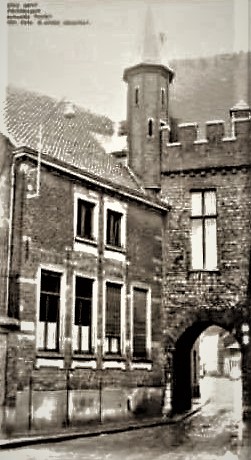 Aansluitend op de binnengevel van de “Donkere Poort” werd hoogst waarschijnlijk rond 1750 het herenhuis opgetrokken op de oude overwelfde kelders daterend uit de 15e eeuw. Heden ten dage is het gekend als het “Sastehuis”, een opvangcentrum voor ontslagen gevangenen.