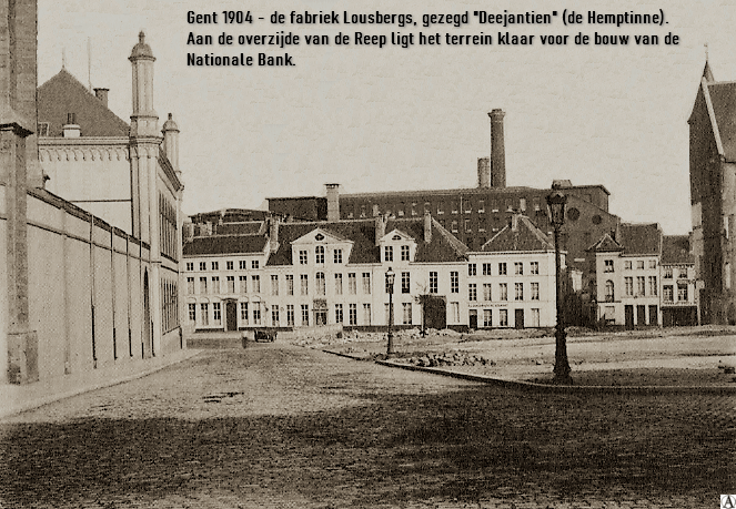 Wat gebeurde met de fabriek van Lousbergs? Deze fabriek was de grootste katoenspinnerij en -weverij van Gent met 46.000 spoelen en 1.100 weefgetouwen. De waarde werd geschat op ongeveer vier miljoen fr. De erfgenamen vroegen aan de regering een naamloze maatschappij op te richten om de fabriek van Loushergs verder uit te baten. De regering stond gunstig tegenover dit voorstel maar er kwam protest vanwege een dertigtal Gentse nijveraars. De petitie aan de regering werd opgesteld door Camille de Bast. Hierop verzaakten de erfgenamen aan hun voorstel. De textielfabriek krijgt nu de naam Dehemptinne en zal alzo lang in de volksmond gekend blijven. Op 15 november 1873 werd de naamloze maatschappij Ferdinand Lousbergs met een kapitaal van tien miljoen fr. opgericht. De beheerders waren Ch. Dehemptinne, Jozef Dehemptinne, Jules Dehemptinne en J. Casier-Dehemptinne. Net als een aantal andere katoenfabrieken werd Dehemptinne gesloten in de periode tussen de twee wereldoorlogen.