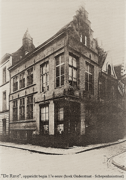 Het huis gelegen op de hoek van de Onderstraat en de Schepenhuisstraat draagt de naam “De Rave”. Een voorstelling van een raaf was gebeeldhouwd op de trapgevel onder de eerste verdieping. De datum was echter verdwenen. Het uitzicht van het huis kwam wat vreemd voor en wel omdat de woning bestond uit twee delen nl. het voorste gedeelte, dat is heropgebouwd, en een tweede deel in de Onderstraat, geconstrueerd boven een verhoogde kelder. Dit deel had zijn oorspronkelijke bouwstijl bewaard met zijn ramen en ankers en vormt een voutkamer met verdieping, wat deze 16-eeuwse woning nog meer uniek maakte.
