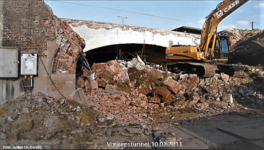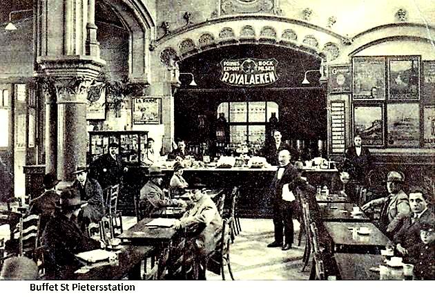 Op het einde van Wereldoorlog I, meer precies 1 en 2 november 1918, vernielden de Duitsers alle spoorwegviaducten tussen ’t Strop en Sneppebrug. De omgeving van het St.-Pietersstaton was herschapen in een puinhoop. Daarbij was de lange ondergrondse doorgang die leidde naar de perrons volledig ingestort. Om het treinverkeer zo vlug mogelijk te herstellen werden de rails ingewerkt in de straten. Wat een ongewoon beeld opleverde aan de voorzijde van het St.-Pietersstation (foto).