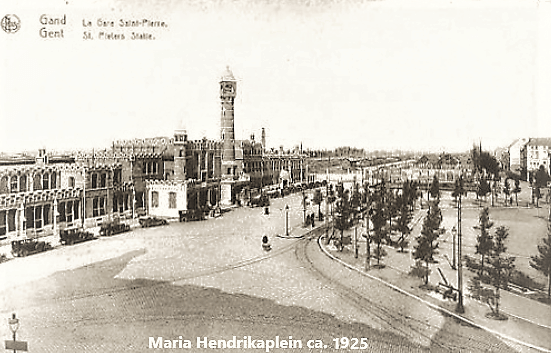 9 juli 1909. Ondanks de aanhoudende regen van de voorbije natte lente tot op heden en de daaruit voortvloeiende vertragingen in de aanlegwerken, is de nieuwe tramlijn naar het voorlopige St-Pietersstation geheel en al afgewerkt. Sedert donderdagnamiddag om 4 uur rijden de trams van lijn 4 van de Zuidstatie enerzijds en de Korenmarkt anderzijds over de Maria-Hendrikaplaats.