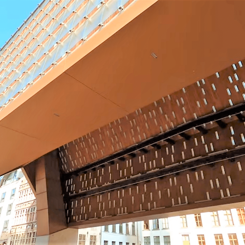 De overkapping bestaat uit een stalen constructie die op vier betonnen sokkels rust, is 40 meter lang, 15 meter breed en ongeveer 20 meter hoog. De sokkels zijn vier meter hoog en bevatten twee liften en leidingkokers naar de ondergrondse verdieping. De overkapping zelf is bedekt met een afwerking van Afrormosiahout, dat een glazen ‘deken’ kreeg. Volgens de architecten Robbrecht, Daem en Van Hee moet het glas de kleuren en de tinten van de lucht opnemen, waardoor het uitzicht voortdurend wijzigt. In het dak zitten 1.600 kleine raampjes, die moeten zorgen voor een dynamische lichtinval en een lichtspel op de grond.