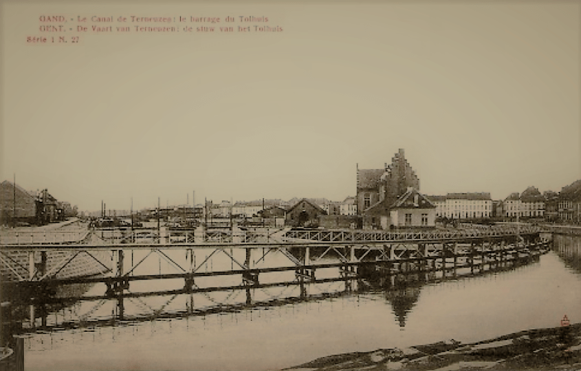 Te Gent werd het waterpeil geregeld met een sluis aan de Nieuwe Schaapbrug tussen Oudburg en Sluizeken (al in 1322 vermeld) bij de monding in de Leie. In 1580 werd dit sluisje bij de aanleg van de Calvinistische stadsversterkingen en de bijhorende aanpassingen aan de Sassevaart, vervangen door de Tolpoortsluis.