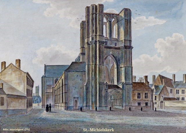 Reeds tussen 1156 en 1169 greep de ontvoogding plaats die voor felle en jarenlange discussie zorgde tussen de twee parochies. De Gentse bisschop Cornelius Jansenius stelde daaraan een einde in 1561 door beide parochies een afzonderlijk statuut te verlenen. In de jaren 1120 en 1125 en nog eens in 1212 werd de kerk door brand geteisterd. Telkens werd ze vlug heropgebouwd en waarschijnlijk maakte men van de gelegenheid gebruik om ze merkelijk te vergroten. In een document uit 1244, dat handelt over de oprichting van een kapelanie, vermeldt mem herhaaldelijk “ecclesia sancti Michaëlis Gandavensi”. Op dat ogenblik is er dus reeds sprake van een kerk.