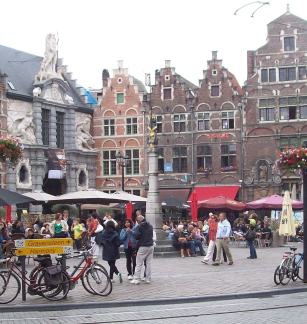 Het Veerleplein kent een unieke ligging tussen het Gravensteen, de Vismijn en het Patershol.
