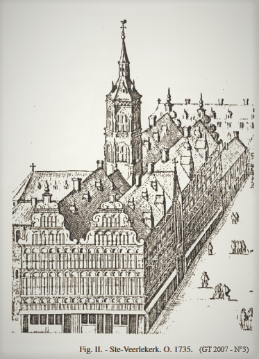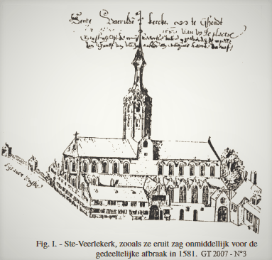 Het Veerleplein maakte deel uit van het grafelijk voorhof. Hier stonden gebouwen van de grafelijke residentie zoals scholen, een hallegebouw en de St.-Veerlekerk (1216). Deze bidplaats deed dienst als hofkapel voor het grafelijke gevolg en was toegewijd aan St.-Pharaïldis, tot ze werd afgebroken door de Calvinisten om plaats te ruimen voor woningbouw.