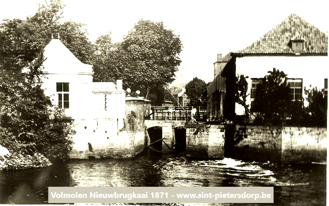 Tussen 1777 en 1779 verrees er op de hoek van de huidige Nieuwbrugkaai met de Volmolenstraat een volmolen onder leiding van Louis ’t Kint. Deze man was eigenaar van verschillende woningen op de plaats waar de molen zou komen. Het gehele project was Louis verantwoordelijkheid wat inhield de volmolen zelf, het molengebouw, de bijgebouwen, een magazijn en de creatie van een nieuwe stuw.
