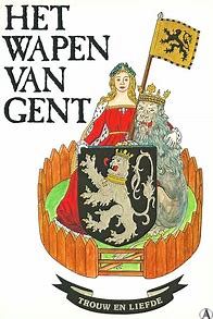 Het oudste wapen van Stad Gent dd. ll99 stelt Johannes de Doper voor met aureool en zegenend met de rechterhand, rechtop begeleid door twee kandelaars voor een gebouw in romaanse stijl waarop twee vogels gezeten zijn. Het tegenzegel draagt de beeltenis van het Paaslam. De H. Johannes de Doper begeleid door twee engelen vinden wij in het veld der Gentse zegels tot in het midden der XIV e eeuw. In 1361 verschijnt inderdaad een zegel ad causas dat een gekroonde klimmende leeuw voorstelt. Een beeltenis die vanaf 1275 op de tegenzegels voorkwam. Van 1397 af werd de leeuw ingesloten in een schildveld gedragen door een adelaar en gehouden door twee vrouwenfiguren.