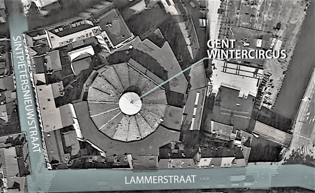 Een stenen circus, naar een ontwerp van architekt Emile De Weerdt, verrees op het terrein van een afgebrande katoenfabriek gelegen St.-Pietersnieuwstraat-Lammerstraat.