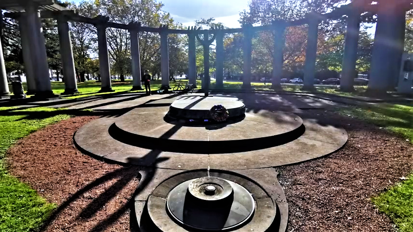 Aan de Jules de Bruyckerdreef verscheen rond 1956 een arcade opgebouwd met de pilaren van de voorgevel van het Zuidstation. Het omgeeft het herinneringsmonument voor de oorlogsslachtoffers van WOI en WOII.